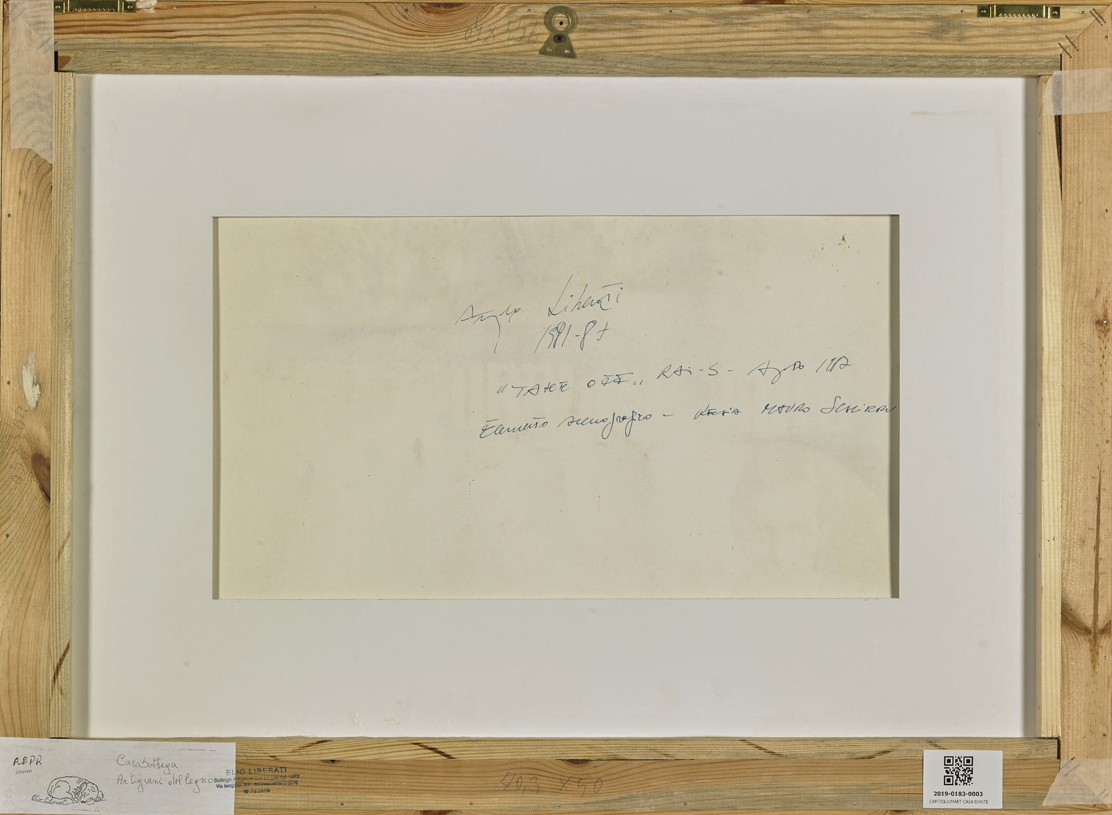 LIBERATI ANGELO (n. 1946) Take off. Tecnica mista su carta. Cm 70,00 x 50,00. Firma in basso a destra. Al retro titolo, firma e anno. 1981-1987. Cornice presente