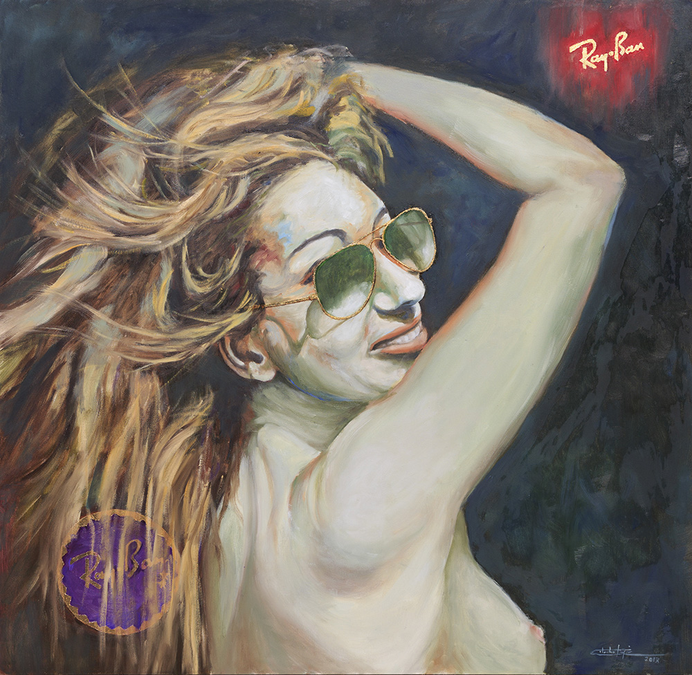 SERGIO COLOMBO Quando un oggetto diventa un mito olio su tela ed oro zecchino cm 100x100