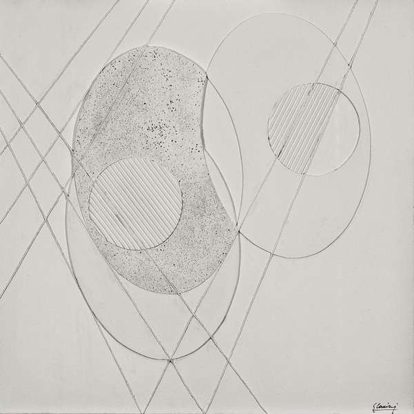 Enrico Carniani Sovrapposizioni bianche, 2010 sughero,filo,cartone,cartone ondulato e acrilico su tela Dimensioni : cm. 60x60 Firma in basso a dx