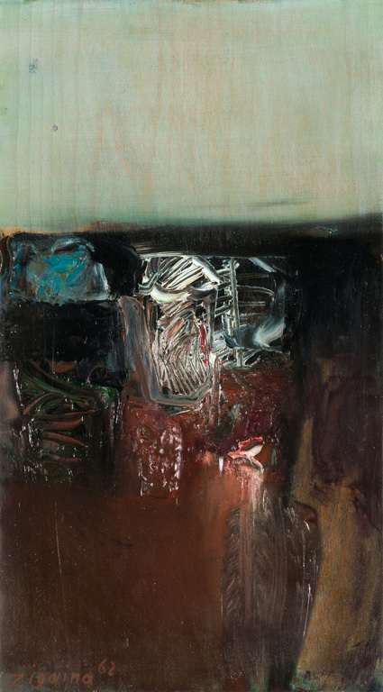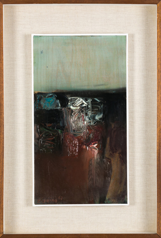 GIUSEPPE ZIGAINA (1924-2015)Senza Titolo, 1962Olio su tavolacm 36x19,5Firma e...