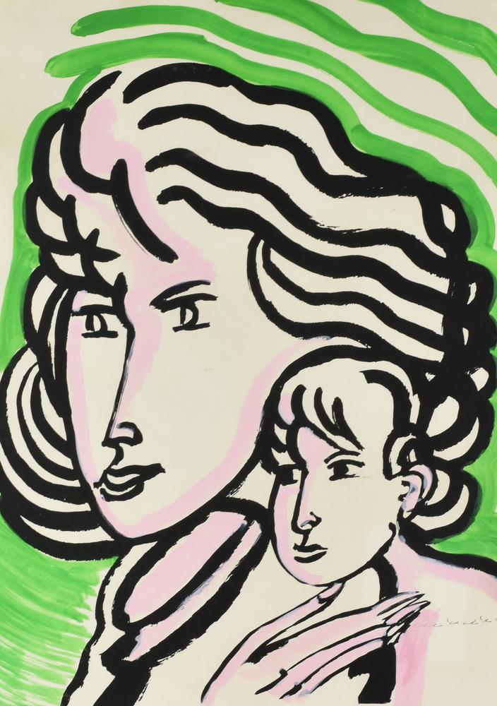 Remo Brindisi MATERNITA' litografia ritoccata a mano (retouchè), cm 70x50 sul fronte: firmato sul retro: timbro retouchè autentico Remo Brindisi eseguito nel 1981