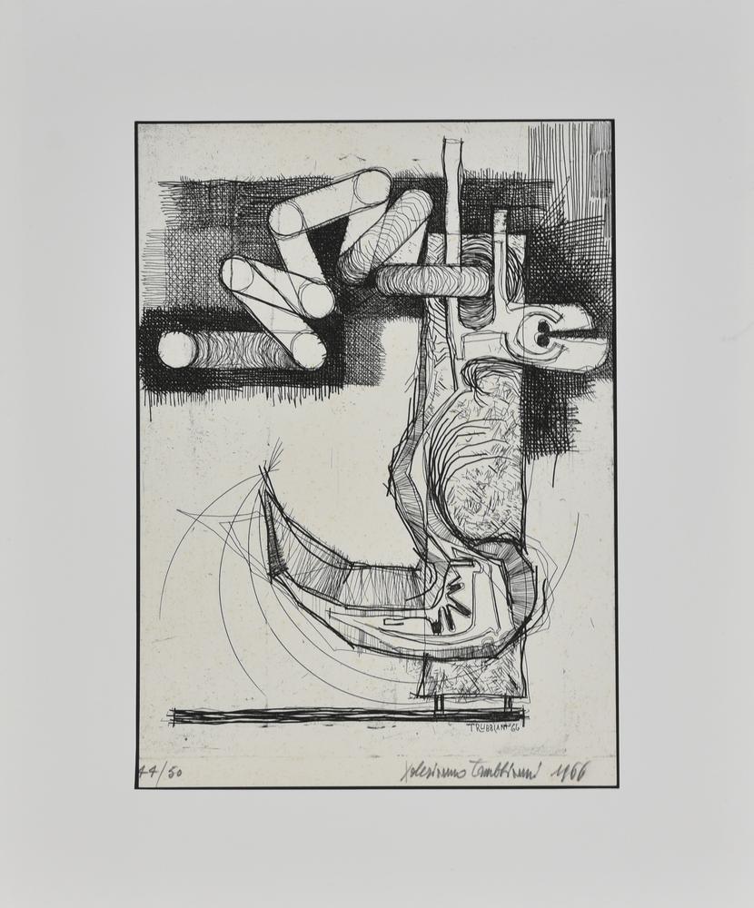 Valeriano Trubbiani COMPOSIZIONE incisione, cm 37,5x29 firmato, datato e numerato esemplare 44/50 esegutio nel 1966
