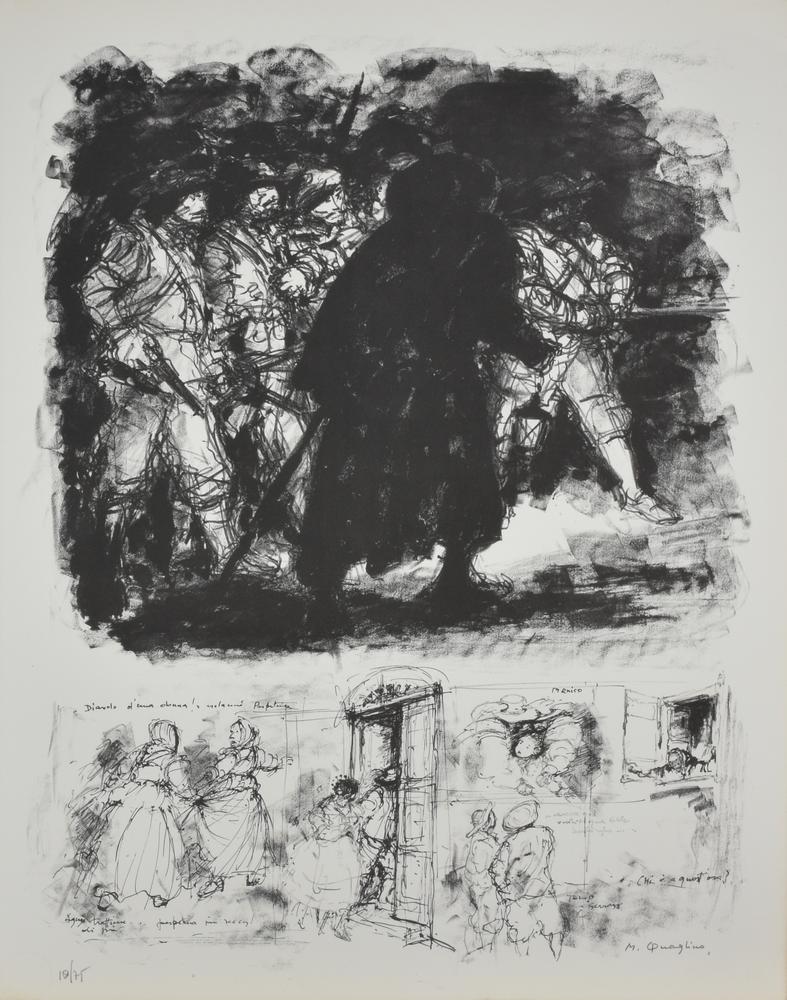 Massimo Quaglino I PROMESSI SPOSI litografia su carta, cm 65x51 esemplare 10 di 75 sul fronte: firma e timbro a secco "EspoLito Torino"