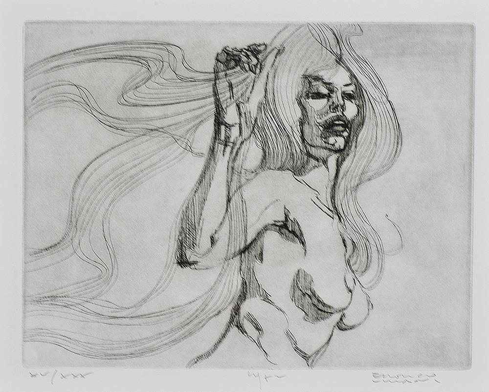 Enrico Villani LA REGINA DI ISOLE incisione su carta, cm 34x40 (lastra cm 20x28) esemplare XV/XXX sul fronte: firma