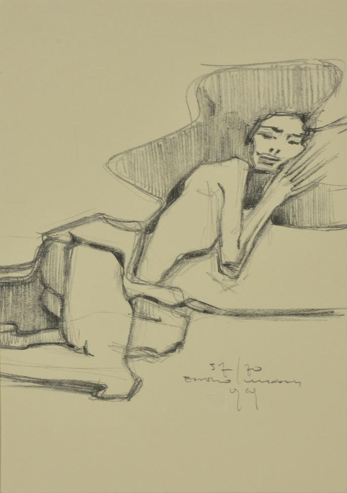 Enrico Villani NUDO ACCOVACCIATO litografia su carta, cm 35x25 esemplare 57 di 70 sul fronte: firma e data eseguita nel 1969