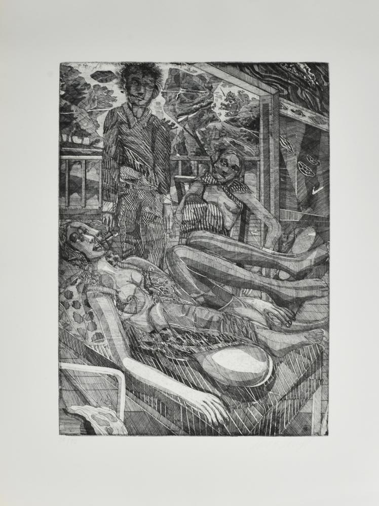 Heinz Stangl INTERNO 1 acquaforte su carta, cm 70x50 (lastra cm 49,5x34,5) esemplare 37 su 90 sul fronte: firma L'opera presenta alcuni segni di stropicciatura