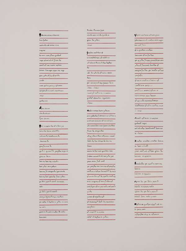 Mara Cantoni Graduale: Missa, 2010 inchiostro e trame di cotone su tela Dimensioni : cm. 80x60 Firma sul retro Autentica dell'artista su foto
