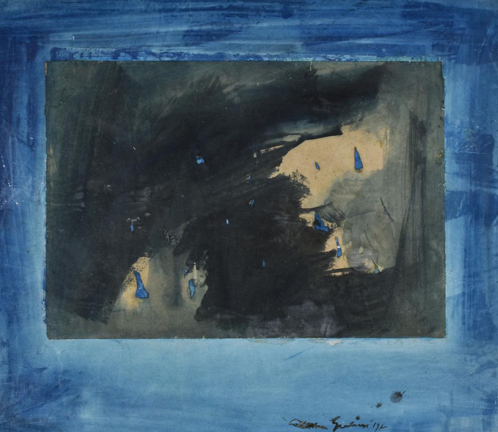 Costantino Guenzi SENZA TITOLO tecnica mista su carta applicata su tela, cm 58x67 sul fronte: firmato e datato eseguito nel 1970