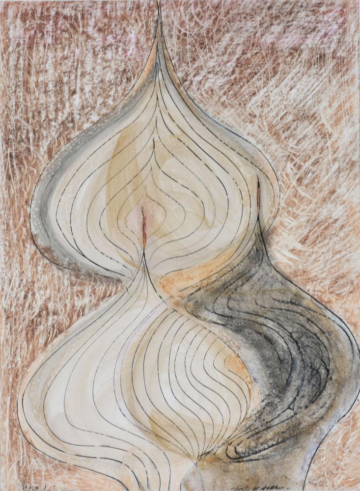 Ezio Gribaudo CUPOLE A MOSCA tecnica mista su carta, cm 32x24 sul fronte: firma