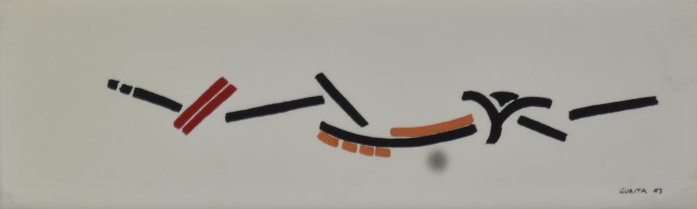 Lotto 280 | Carlo Guaita ARRIVO ALL'OASI tecnica mista su carta, cm 8x23 sul fronte:...