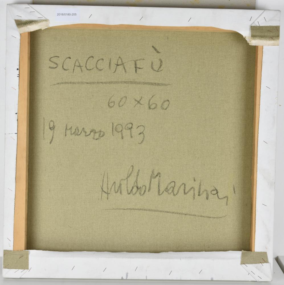 Lotto 282 | Aroldo Marinai SCACCIAFU' olio su tela, cm 60x60 al retro: titolo, firma e...