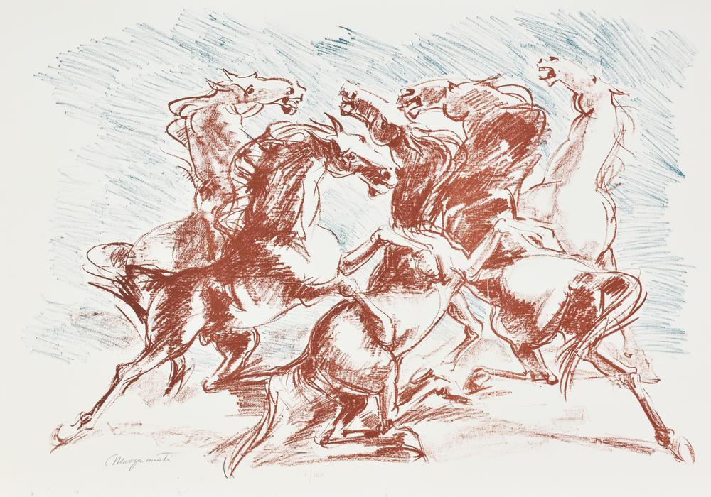 Marino Mazzacurati CAVALLI litografia, foglio cm 50x70 firmato e numerato...
