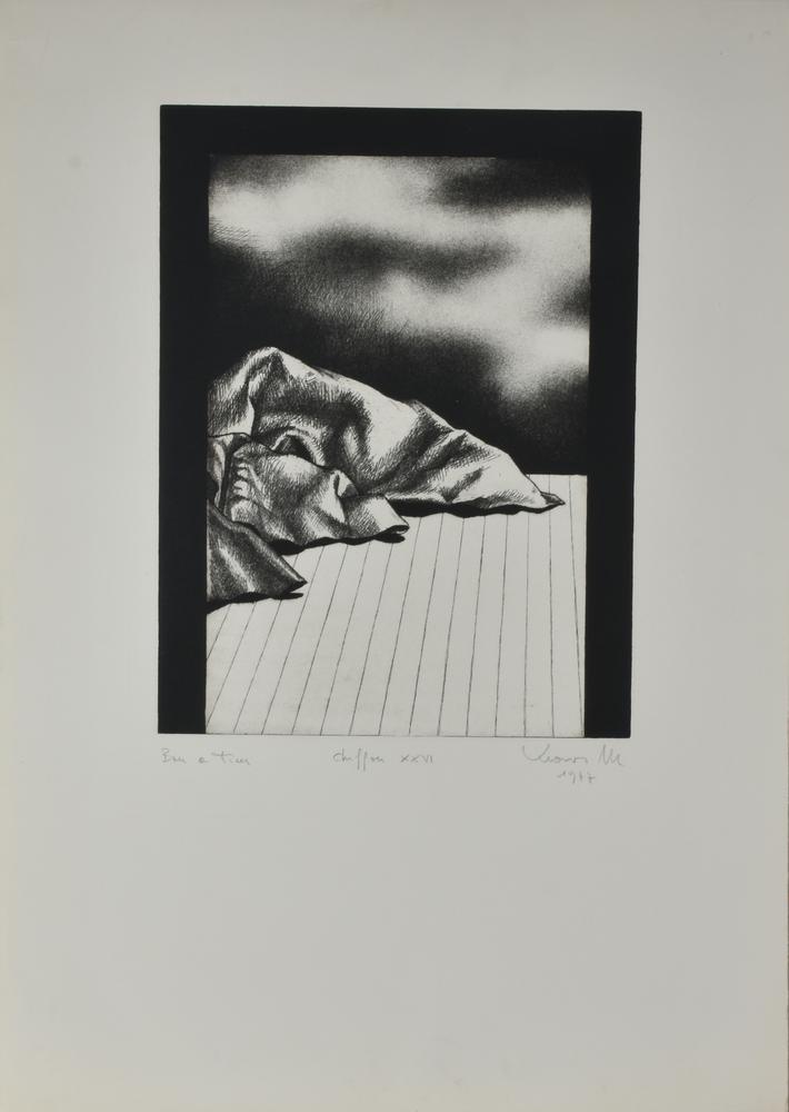 Marjan Kravos CHIFFON XXVI incisione su carta, cm 70x50 (lastra cm 39x30) esemplare bon a tirer sul fronte: firma e data eseguito nel 1977