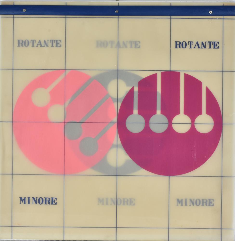 Arnaldo Pomodoro Rotante minore 3 serigrafia e collage a mano su carta lucido, cm 50x50; es. 75/200 edizione di 200 esemplari L'opera è accompagnata da certificato di provenienza della Galleria Simmi, Roma L'opera era stata concecpita per far parte di una cartella di 5 opere (Ballocco, Biasi, Nannucci e Nigro), realizzata nel 1973 ed utilizzate per la copertina di "Esso Rivista" eseguito nel 1974 Provenienza Galleria Simmi, Roma Collezione privata, Roma