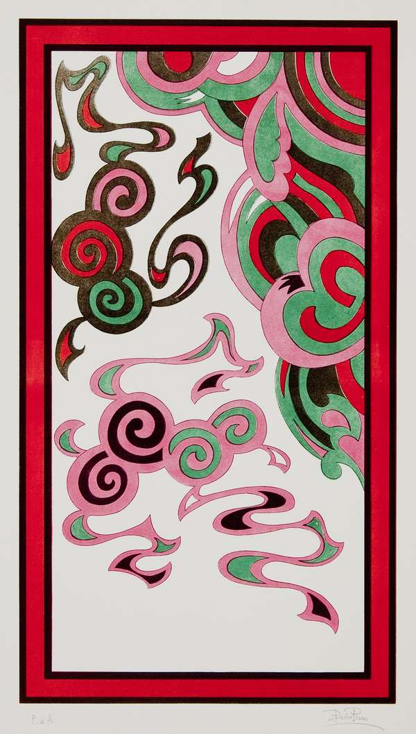 Emilio Pucci Senza titolo litografia,es. p.d.a. Dimensioni : cm. 60x33 l'inciso - cm. 70x50 Firma in basso a dx dell'inciso