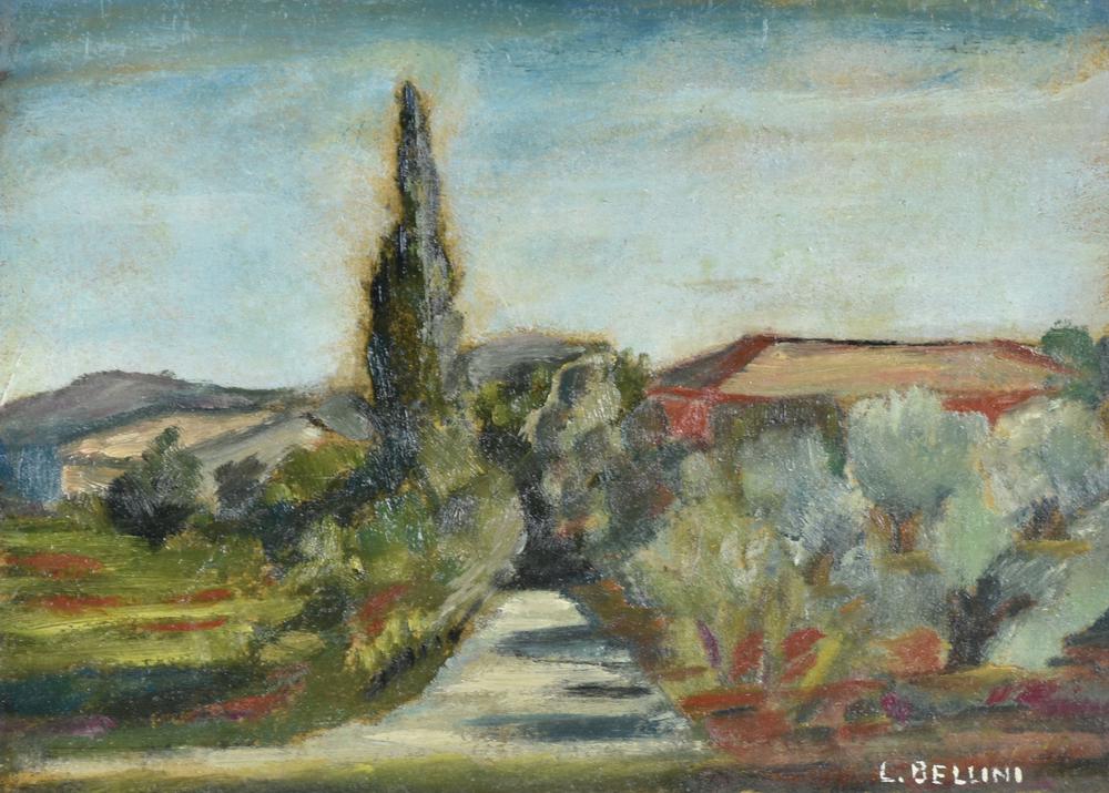 Lina Bellini CASE olio su cartone, cm 14,5x20 firmato sul retro: firmato e...