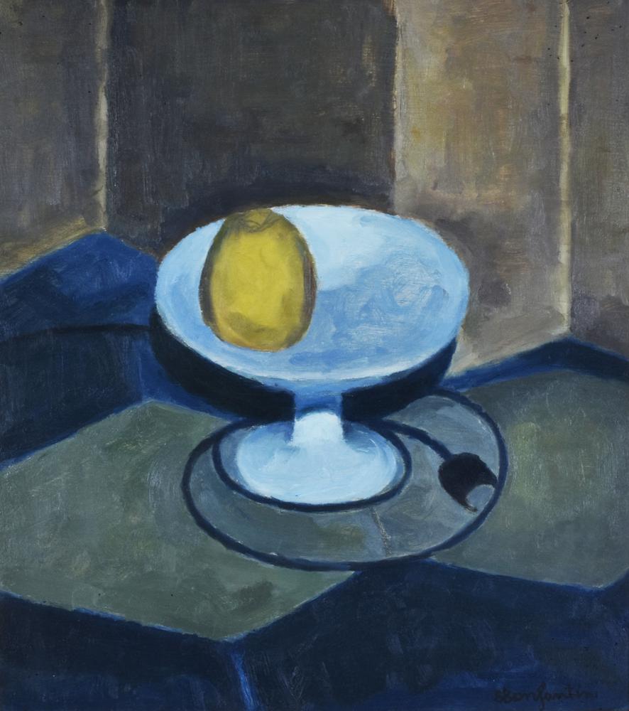 Sergio Bonfantini PORTAFRUTTA E ATTACCO ELETTRICO olio su tavola, cm 45x40 sul fronte: firma sul retro: firma, titolo, data e timbri "Fondazione Sergio Bonfantini Novara" eseguito nel 1984
