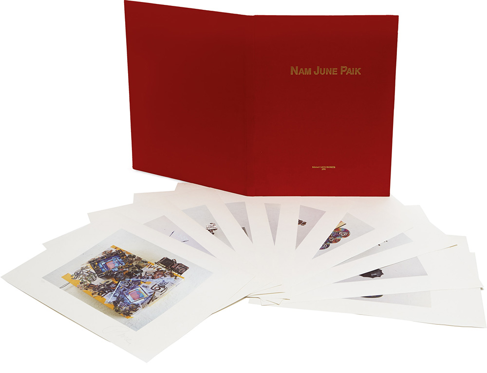 Nam June Paik 1932 - 2006 Il Novecento, 1992 Litografia 46 x 34 cm (18.11 x 13.39 in. ) Misure del contenitore: 48,5 x 36x 2 cm L'opera si compone di 10 litografie, firmate e numerate dall'artista Cartella n. 14/130 L'opera è stata realizzata in occasione della mostra "Il Novecento" di Nam June Paik. Arti elettroniche, cinema e media verso il XXI secolo, Palazzo delle Esposizioni, Roma, 11 – 29 novembre 1992 Direzione artista: Massimo Riposati Edizioni Carte Segrete, Roma Provenienza Collezione privata, Capri