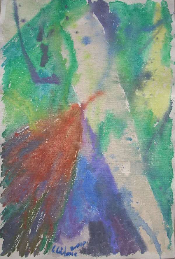 Claudio Caldana Presenza nel paesaggio, 2010 acquarello su tela Dimensioni : cm. 44x30 Firma in basso al centro Archivio dell'artista N. T/019