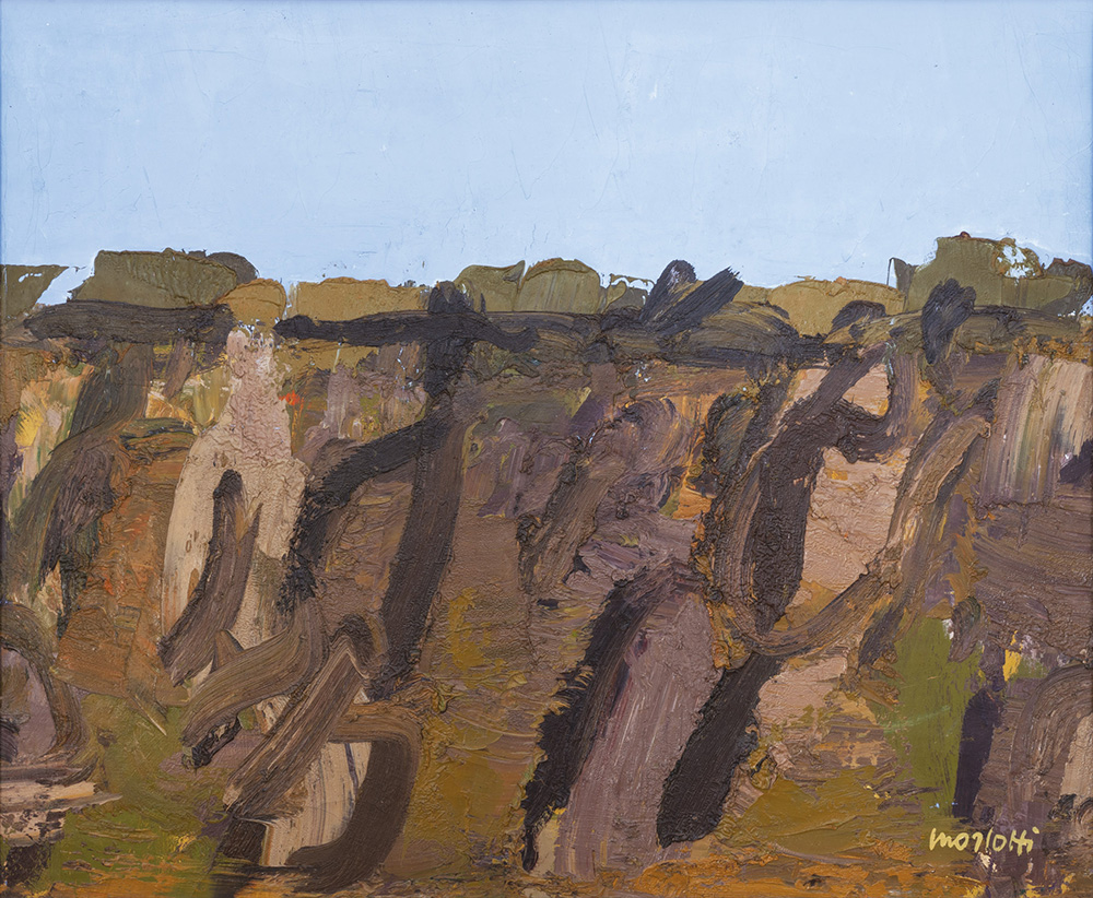 Ennio Morlotti 1910 - 1992 Paesaggio, Databile 1978 Olio su tela 61.3 x 74.5 cm (24.13 x 29.33 in. ) Firma in basso a destra Etichetta Galleria Matasci, Tenero sul retro Provenienza Galleria Matasci, Tenero Collezione privata, Tenero Collezione privata, Milano Esposizione “Ennio Morlotti” , Galleria Matasci, Tenero , 1987 Letteratura G. Mascherpa, “Morlotti, lombardo d’Europa” in Ennio Morlotti, catalogo della mostra, Galleria Matasci, Tenero, 1987, p. 68, ill. 40 G. Bruno, P.G Castagnoli, D. Biasin,"Ennio Morlotti, Catalogo Ragionato dei dipinti", Ed. Skira, Milano, 2000, tomo II, p. 566, n. 1606