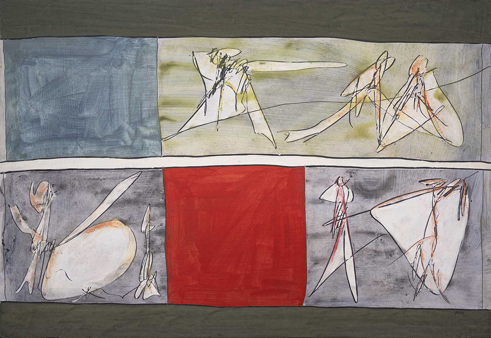 Achille Perilli 1927 Studio, 1961 Tecnica mista su carta intelata 70 x 100 cm (27.56 x 39.37 in. ) Firma e data in basso a destra Timbro della Galleria Tega, Milano sul retro Etichetta della Galleria Levi Arte Contemporanea, Milano sul retro Etichetta della Galleria La Bertesca, Genova sul retro Provenienza Galleria Tega, Milano Galleria Levi Arte Contemporanea, Milano Galleria La Bertesca, Genova Collezione privata, Forlì Certificato L'opera è accompagnata da certificato di autenticità su fotografia dell'artista, rilasciato in data 18/06/1999. L'opera è iscritta con il n. 80/1961 nel catalogo generale come da autentica su fotografia.