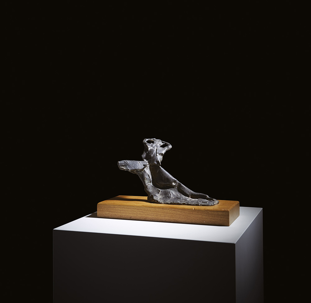 Marino Marini 1901 - 1980 Composizione, 1956 Bronzo 19 x 32 x 9.5 cm (7.48 x 12.60 x 3.74 in. ) Base in legno: 4,5 x 40 x 16,5 cm Firma siglata in basso a destra sulla base dell'opera Provenienza Collezione privata, Livorno Esposizione "Marino Marini, Il segno la forma l'idea, sculture, tecniche miste, disegni, litografie e incisioni 1929 - 1980", Guastalla Centro Arte, Livorno, 17 maggio - 17 luglio 2008 "Marino Marini dal colore alla forma, sculture, tecniche miste, disegni e opere grafiche 1929 - 1980", Guastalla Centro Arte, Livorno, 25 novembre 2017 - 15 febbraio 2018 Letteratura Catalogo della mostra "Marino Marini, Il segno la forma l'idea, sculture, tecniche miste, disegni, litografie e incisioni 1929 - 1980", Edizioni Graphis Arte, Livorno, 2008, p. 28, n. 5 Catalogo della mostra "Marino Marini dal colore alla forma, sculture, tecniche miste, disegni e opere grafiche 1929 - 1980", Edizioni Graphis Arte, Livorno, 2017, p. 18, n. 6 Certificato L'opera è accompagnata da certificato di autenticità su fotografia rilasciato dalla Fondazione Marino Marini, Pistoia in data 23/04/1990. N. archivio 17