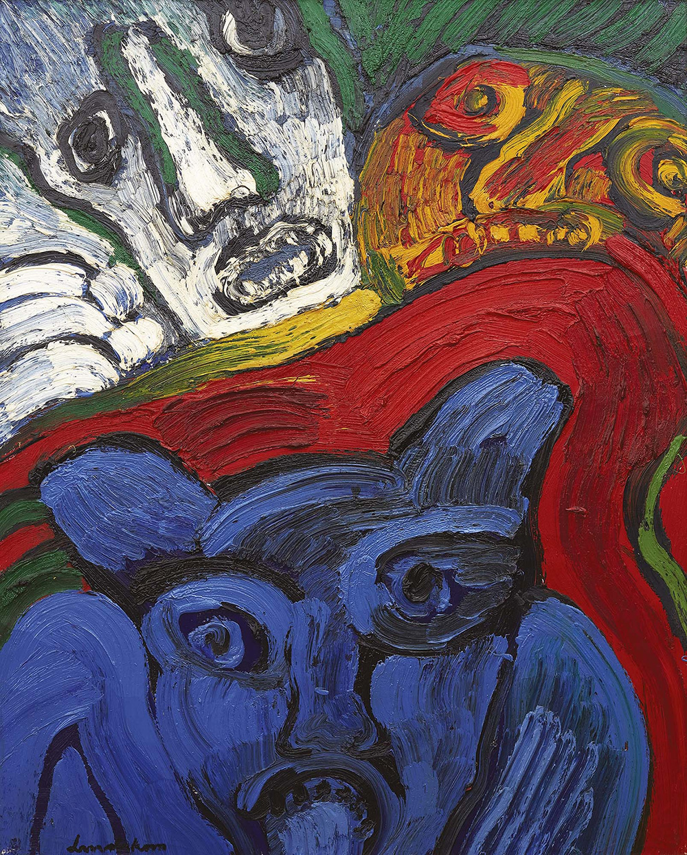 Bengt Lindstrom 1925 - 2008 Le loup garou, 1973 Olio su tela 160 x 130.5 cm (62.99 x 51.38 in. ) Firma in basso sinistra Etichetta della Galleria Ariel, Parigi sul retro Provenienza Galleria Ariel, Parigi Collezione privata, Verona Certificato L'opera è accompagnata da certificato di autenticità su fotografia rilasciato dal Comitato Bengt Lindström, Parigi in data 14/06/2016.