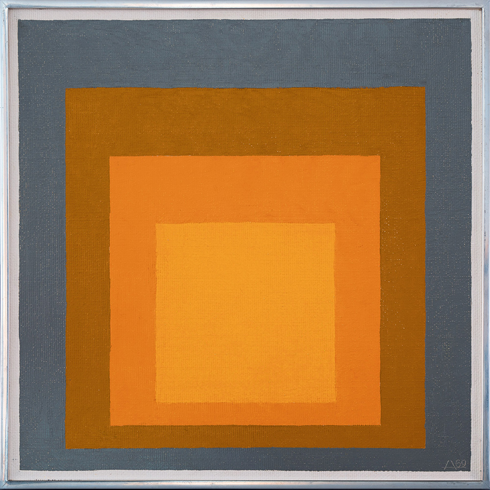 Josef Albers 1888 - 1976 Study for Homage to the Square: Profuse, 1969 Olio su masonite 40 x 40 cm (15.75 x 15.75 in. ) Firma siglata e data in basso a destra Descrizione autografa dell'artista sul retro Etichetta della Sidney Janis Gallery, New York sul retro Timbro della Galleria d'Arte Niccoli, Parma sul retro Provenienza Sidney Janis Gallery, New York Galleria d'Arte Niccoli, Parma Galleria Il Mappamondo, Milano Collezione privata, Padova Certificato L'opera è accompagnata da certificato di autenticità rilasciato dalla Albers Foundation con firma di Nicholas Fox Weber, in data 17/02/2010.