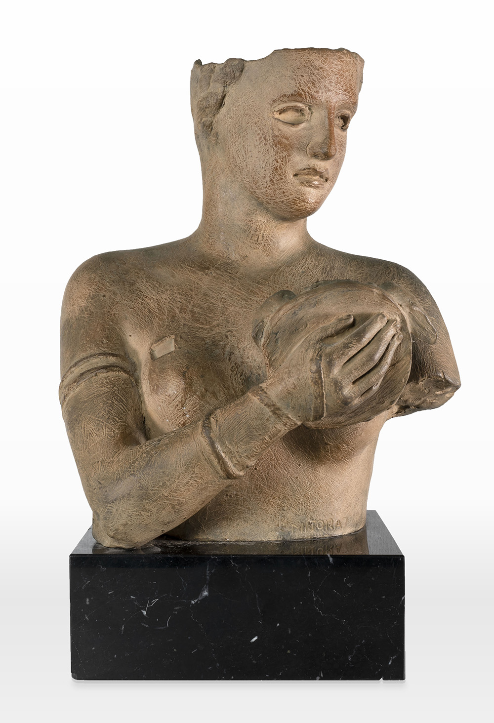 Igor Mitoraj 1944 - 2014 Piccola greca Bronzo 26 x 22 x 18 cm (10.24 x 8.66 x 7.09 in. ) Base in marmo: 6 x 16 x 12 cm Firma e tiratura in basso a destra Es. 4/8 Marchio della Fonderia Tesconi, Pietrasanta in basso a sinistra Provenienza Collezione privata, Capri Certificato L'opera è in fase di archiviazione presso l'Atelier Mitoraj, Pietrasanta.
