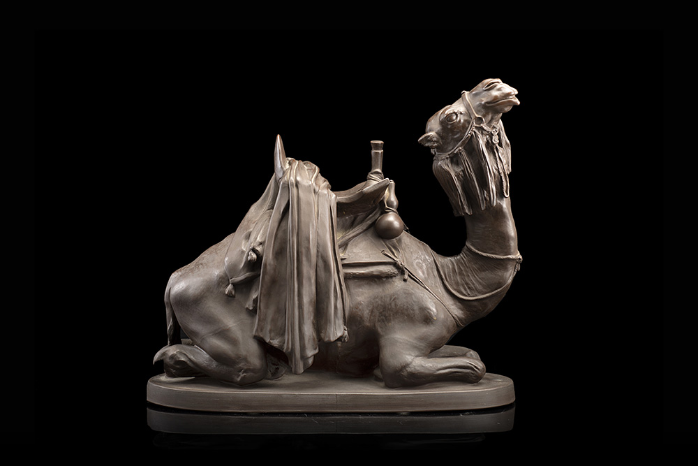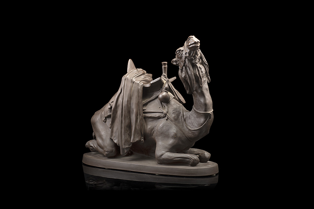 (attr.) Scultura in grès porcellanato in forma di cammello (cm 45,5x39x17) Reca marca Meissen, Bottger Steinzeug