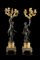 Coppia di candelabri in bronzo brunito e dorato, parte superiore a cinque...