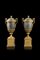 Coppia di vasi di forma classica con corpo in granito, anse, prese e ghiere in bronzo dorato e cesellato a motivo vegetale. Basi squadrate. Secolo XIX (h. cm 32) (restauri)
