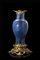 Vaso a balaustro in porcellana blu polvere con dorature decorato con motivi floreali con montatura in bronzo dorato