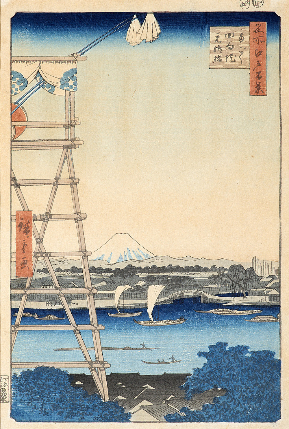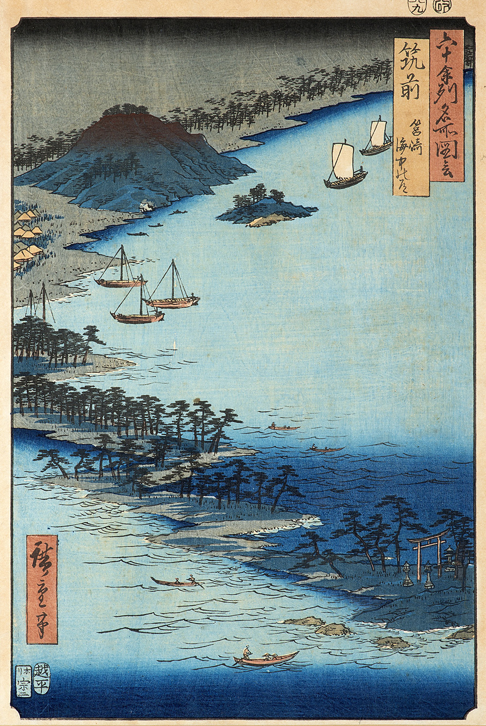 Four wood block prints, ink and colours on paper, signed Hiroshige, framed. Japan, Meiji period, late 19th century