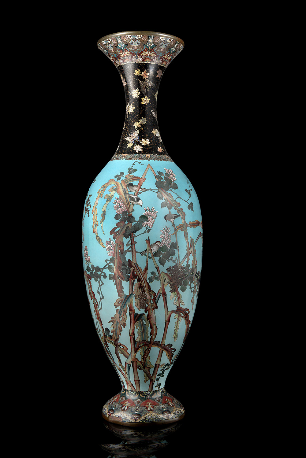 A large cloisonnè enamel vase. Japan, late 19th century (h. cm 124) (flaws)