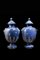 Second half of the 18th century manufacture. A pair of blue majolica vases with covers (h. cm 40) (defects and restorations)
