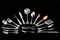 Servizio di posate in argento con prese decorate a volute e campanule...