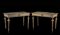 Coppia di tavoli da parete in legno intagliato e dorato, piani in legno a...