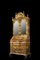 Trumeau in legno laccato e decorato ad arte povera a scene di vita entro riserve policrome e dorate a mascheroni, frutta e fiori. Parte superiore con cimasa sagomata e decorata a pinnacoli torniti e ante a specchio con vani e cassettini. Parte inferiore di forma mossa con scarabattolo con cassettiera, vani e tiretto. Piedi a mensola. Veneto, secolo XVIII (cm 110x255x56,5) (difetti e restauri)