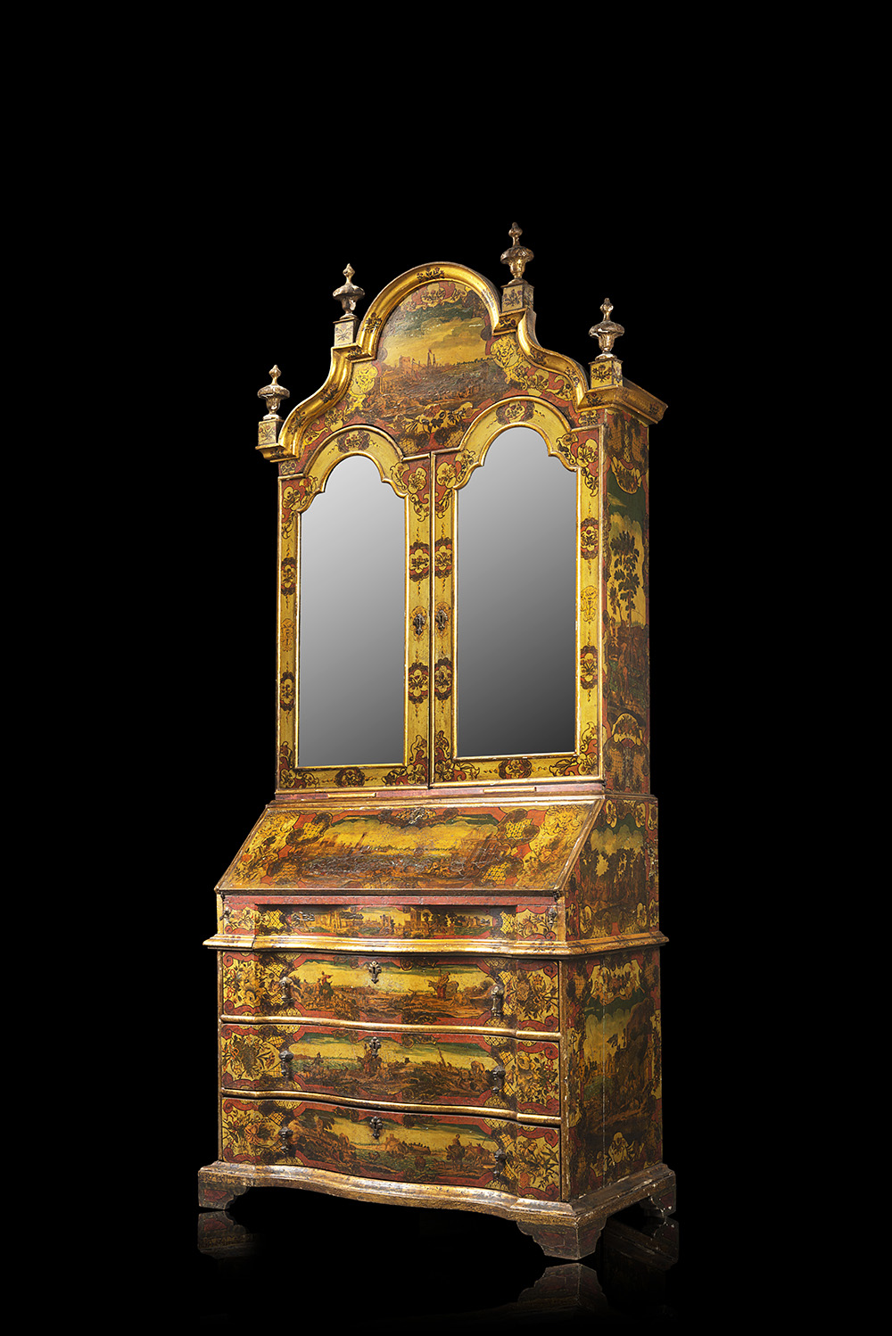 An "Arte Povera" lacquered bureau-cabinet. Veneto, 18th century (cm 110x255x56,5) (defects and restorations)