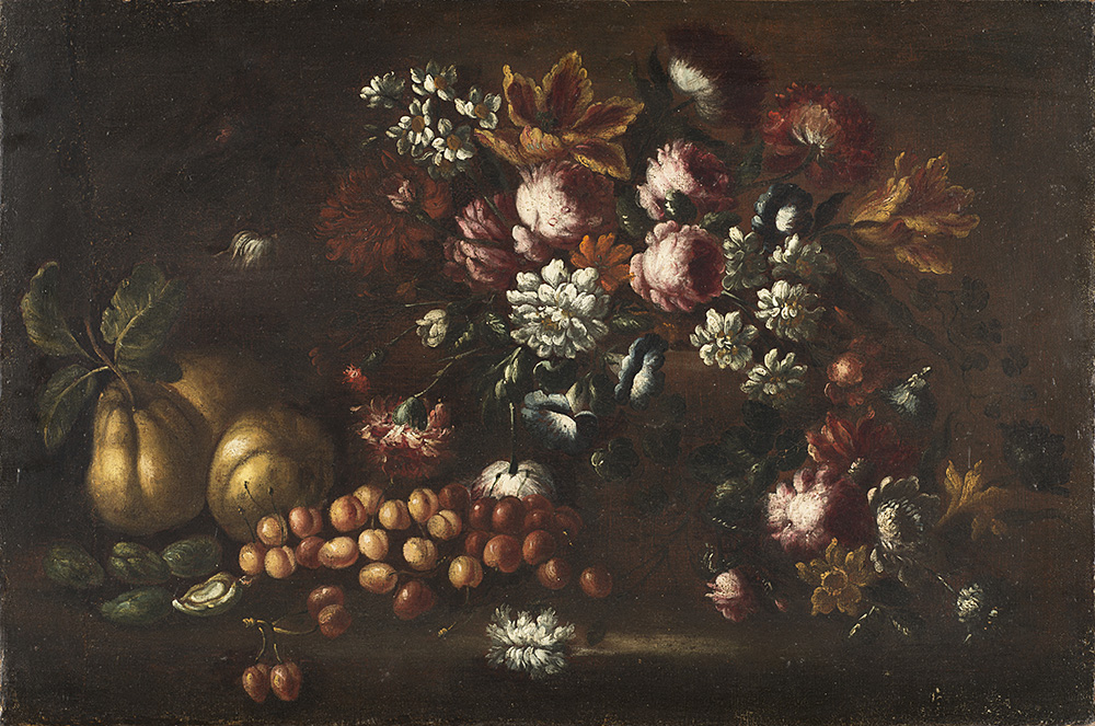 Natura morta di fiori e frutta