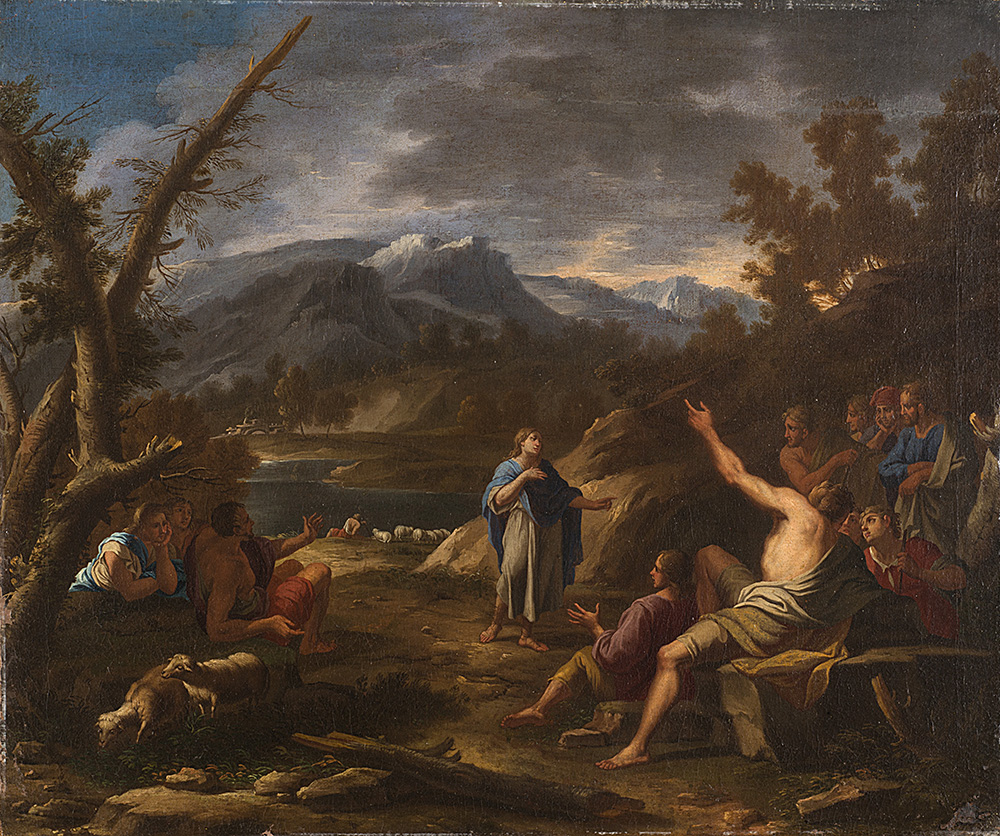 Scuola romana del secolo XVIIILa predica di Cristo agli apostoliOlio su tela...