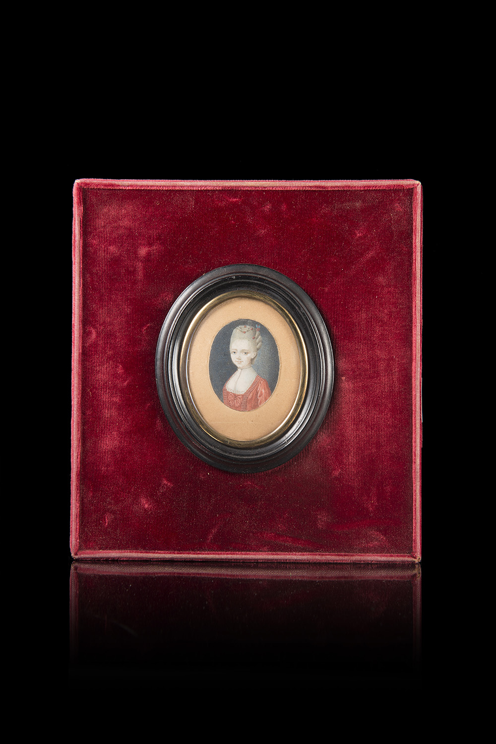 Scuola del secolo XVIII "Ritratto di bambina" miniatura ovale su avorio (cm 4x3,5) In cornice ebanizzata (difetti)
