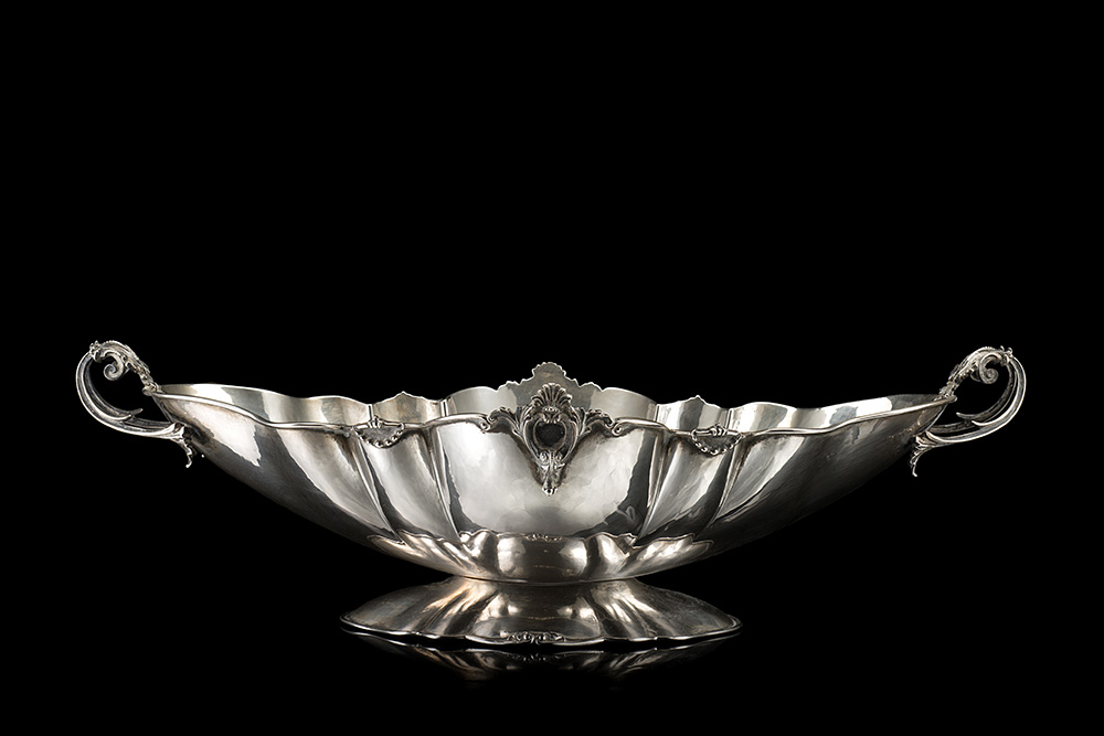 A silver double-handled centerpiece. 1920 ca. (width cm 48) (g 1130 ca.)