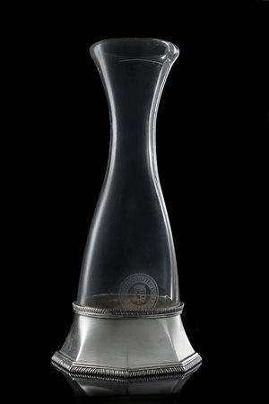 A wine bottle with a silver base. Faraone, Milan (h. cm 25)