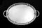 Vassoio biansato in argento, anse decorate da riccioli e volute. Bordura di...