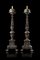 A pair of 17th-century partially lacquered wooden candle holders (h. cm 174) (defects, electrified at a later date)