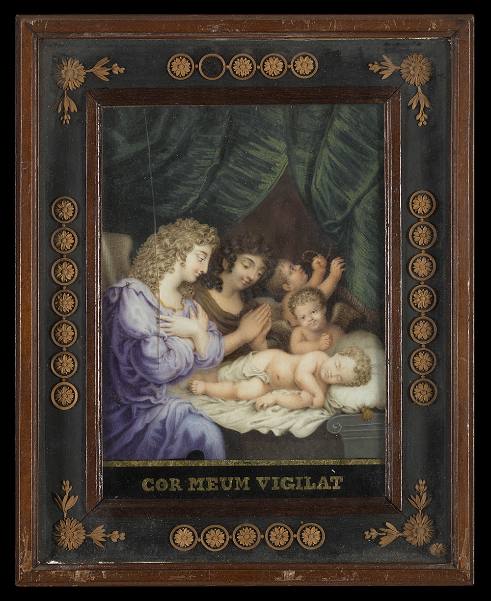 Maestro del secolo XIX "Cor meum vigilat" miniatura rettangolare su avorio...