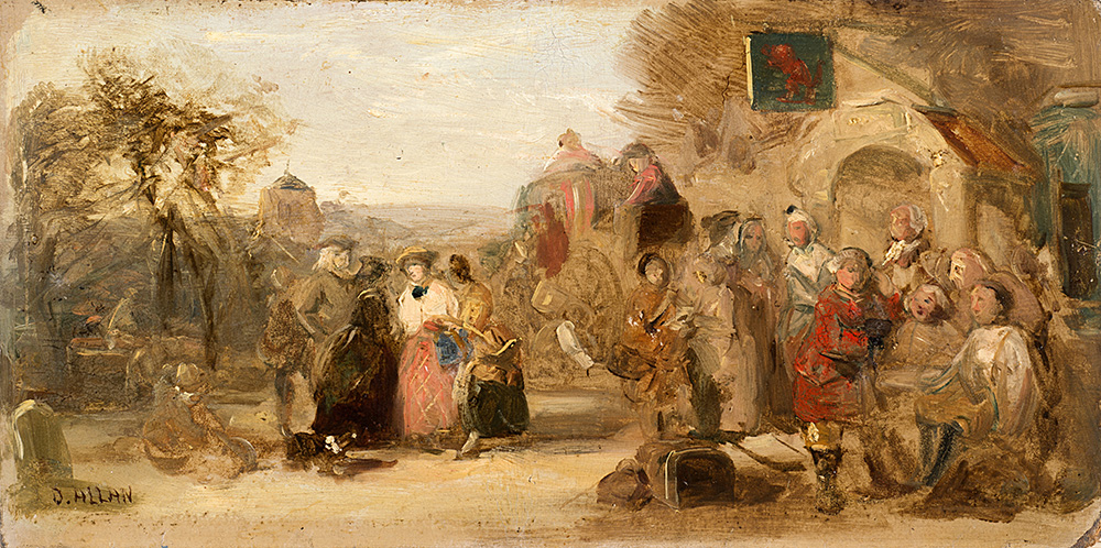 Scuola inglese del secolo XIXScena paesanaOlio su tavoletta cm 14x28Iscritto...