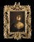 In importante cornice dell'epoca in legno intagliato, scolpito e dorato a volute, motivi di frutta e fiori e figure di putti baccanti a tutto tondo (difetti e restauri)